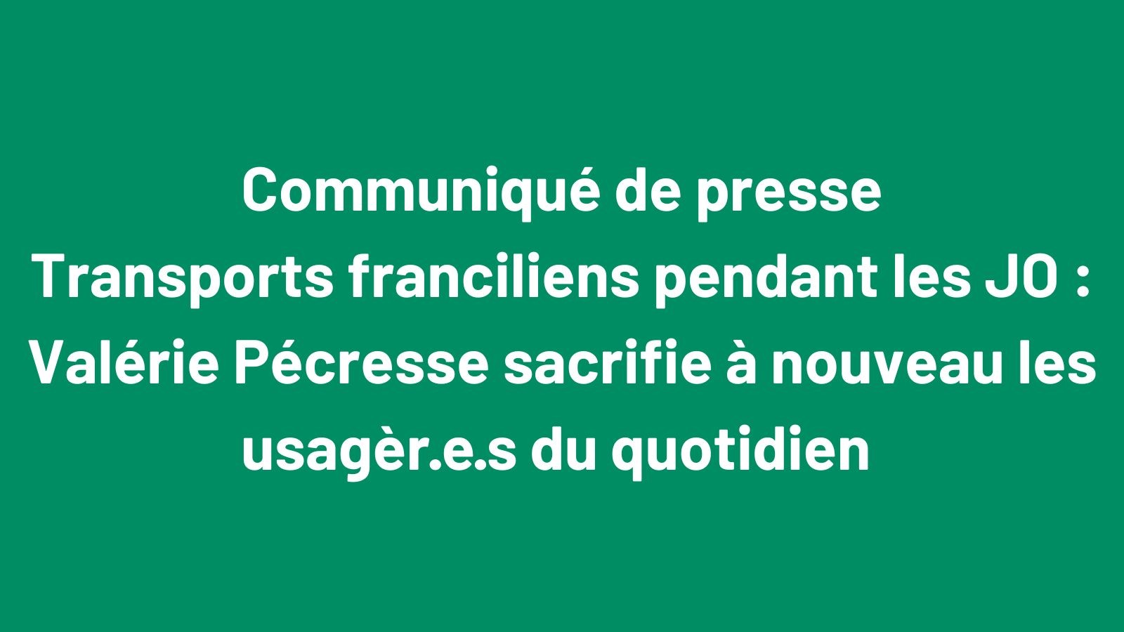 Transports franciliens pendant les JO : Valérie Pécresse sacrifie à nouveau les usagèr·e·s du quotidien