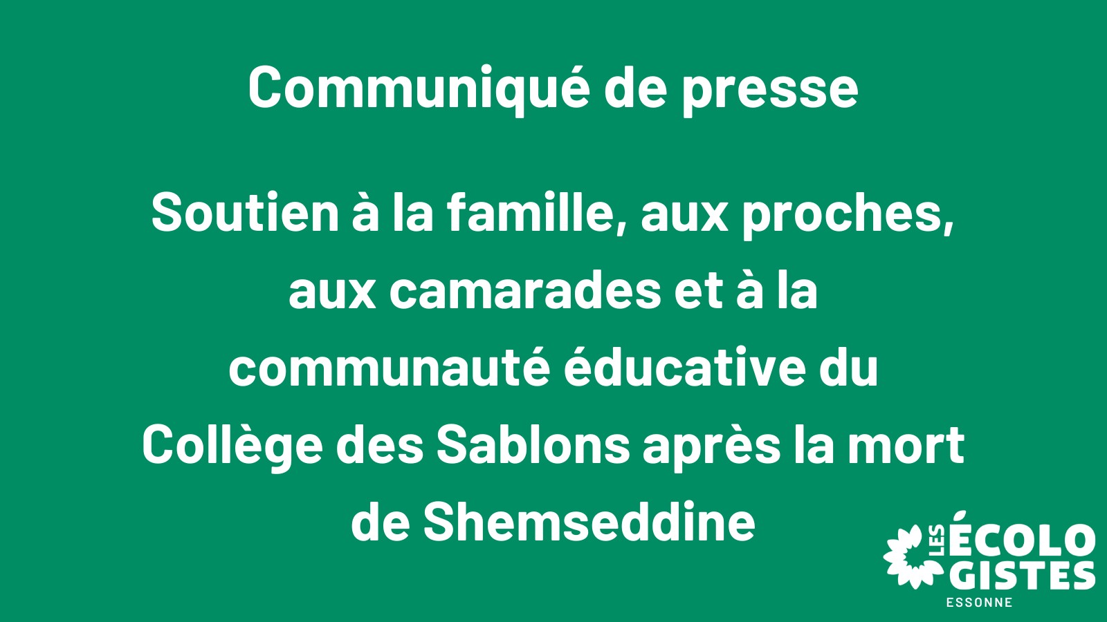 Avant toute chose, Les Écologistes 91 adresse toute leur compassion et leur soutien à sa famille, à ses proches, à ses camarades et à la communauté éducative du Collège des Sablons.